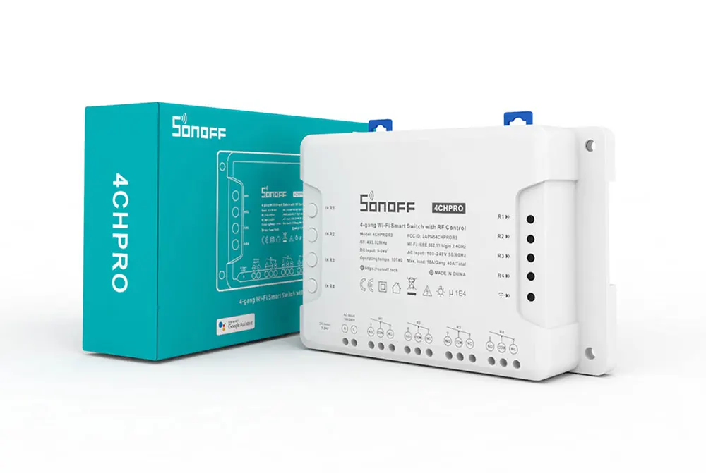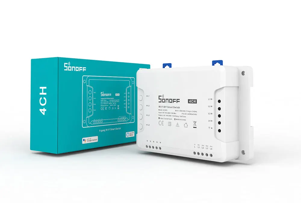 Actually, SONOFF has ever released two types of 4-gang smart switch (4CHR2 and 4CHPROR2) which comes with almost same functions with 4CHR3 and 4CHPROR3. But all the above units are still different in 3 working modes including self-locking, interlock and inching mode. The new improvement on 4CHR3 and 4CHPROR3 compared with 4CHPR2 and 4CHPROR2 is for users to set these 3 working modes on eWeLink APP instead of the hardware itself, easier to operate. So you can enable self-locking mode to turn on/off 4 connected devices separately, interlock mode to turn on 1 connected device every time and turn off the rest of devices simultaneously and inching mode to turn on 1 connected device and then make it turn off automatically after a given time (0.5 - 3600s). For the device away from the switch, you can create a moveable space in virtue of a DIN rail to make them be connected. Simply activate devices through your voice when the switch works with Alexa and Google Home smart assistant.