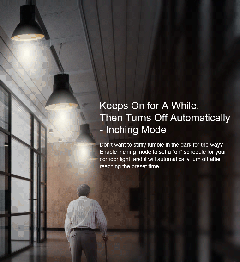 Don't want to stiffly fumble in the dark for the way? Enable inching mode to set a " on" schedule for your corridor light, and it will automatically turn off after reaching the preset time.